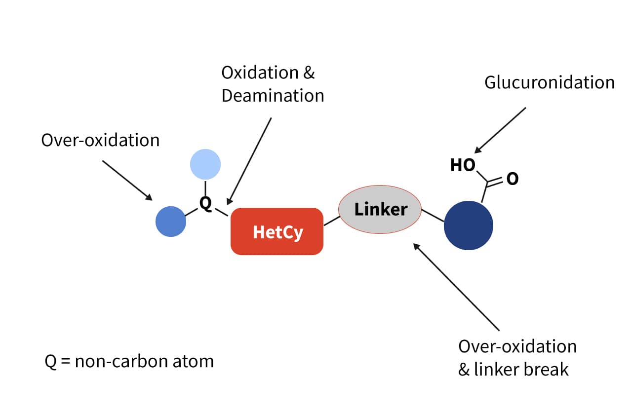 Metabolite identification (Met-ID) studies identified liabilities in different positions of the molecule (Figure 1) such as over-oxidation, deamination and glucuronidation. Strategies to improve metabolic stability (Figure 2) included: