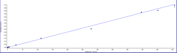 By incorporating these optimized strategies, a high-resolution LC-MS/MS workflow was developed that achieved rapid and sensitive peptide profiling, demonstrating excellent recovery, consistent retention times, and LLOQs at or below 0.1 ng/mL (Figure 2). Linearity across the calibration range was confirmed through method validation, as shown in the linearity plot (Figure 2). Most of the peptides analyzed in this study were synthetic, with molecular weights ranging from 1,400 to 3,000 Daltons.